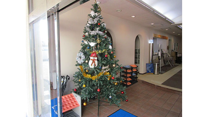 ロビーに、クリスマスフォトスポットをご用意しました。ワンちゃんと一緒に記念撮影しませんか?
